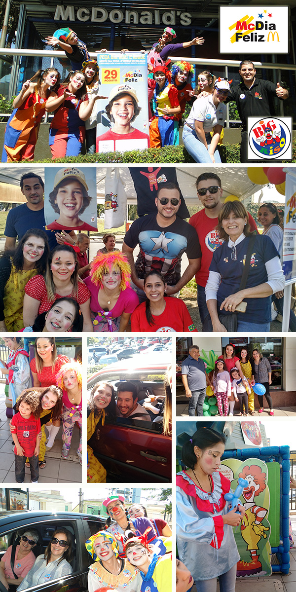 No sábado, dia 29/8, os voluntários do Big Riso (palhaços de hospital), Programa de Responsabilidade Social da construtora MBigucci, vestiram-se de palhaços para apoiar e alegrar mais uma edição do McDia Feliz. Neste dia, o McDonald’s reverte toda arrecadação com a venda do Big Mac (descontando alguns impostos) para o auxílio no tratamento de crianças e adolescentes com câncer.