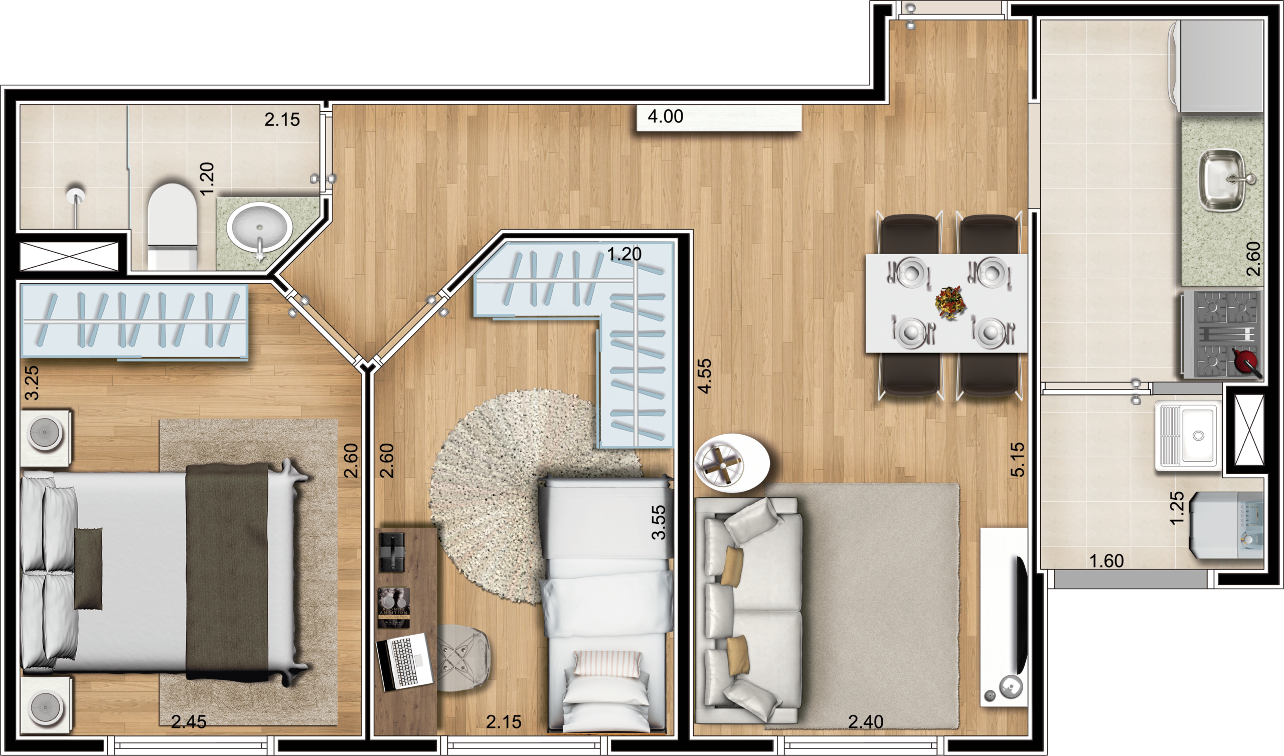Espaço prático e adaptado para uma vida confortável, que se adequa às mais diversas necessidades.