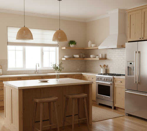 Em vez de brancos e cinzas frios, 2026 aposta em beges, castanhos claros e tons terrosos mais quentes. Essas cores criam ambientes receptivos e versáteis.