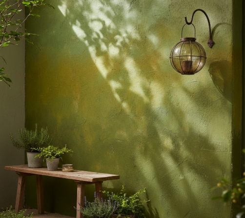 Inspirados na natureza, os tons de verde musgo, oliva e ervas são escolhas que transmitem calma, conexão e renovação. Ideais para quartos, varandas e áreas de relaxamento.